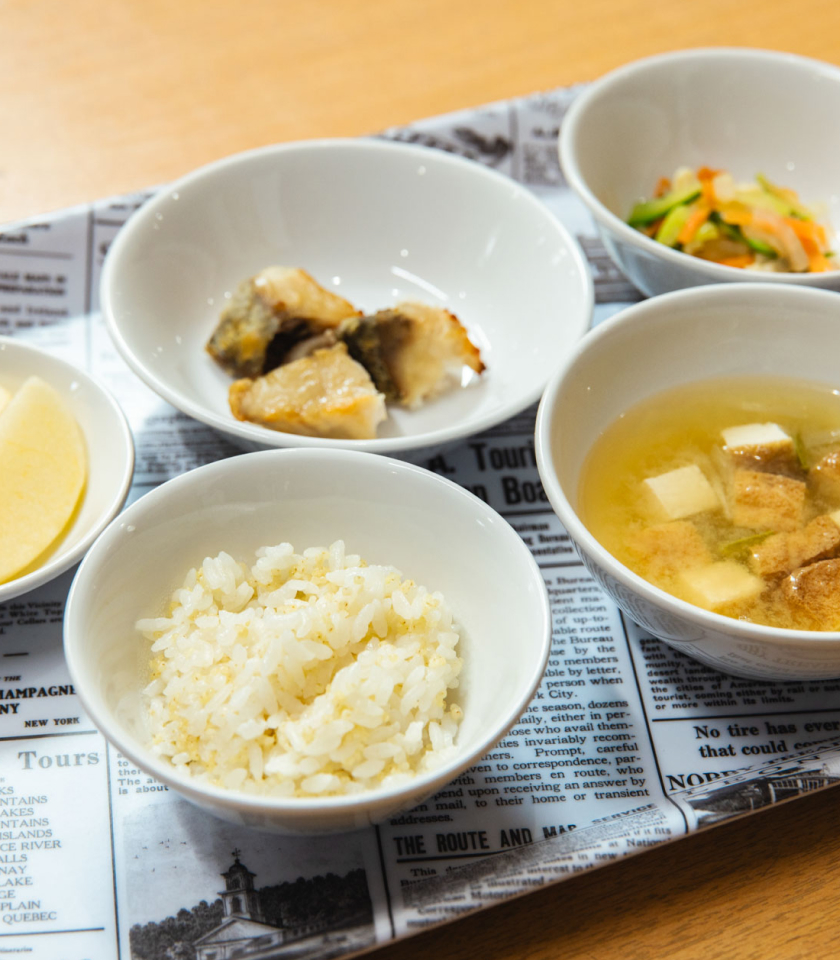 管理栄養士監修、和食を中心とした栄養バランスの取れた給食を提供しています。感覚の敏感さから偏食になりやすい子にも、盛り付けなどを工夫して少しずつ食の体験を広げています。