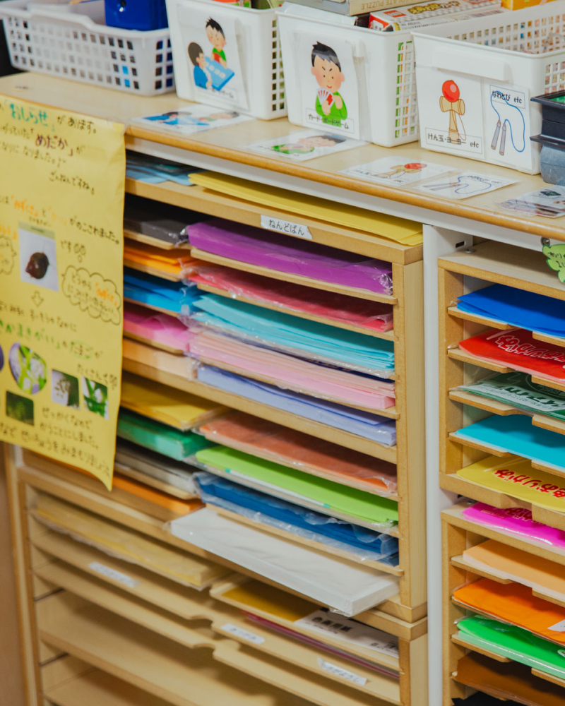 制作や読書などのスペース、運動スペースを活動ごとにコーナー分けしているため、自分のやりたいことを見つけて活動に没頭することができます。